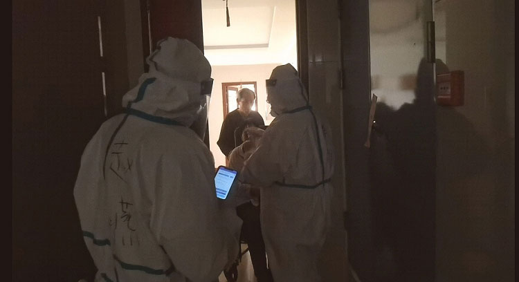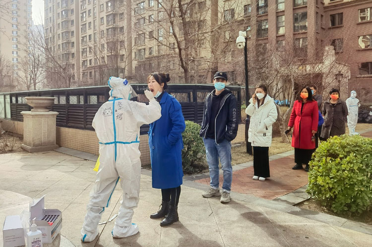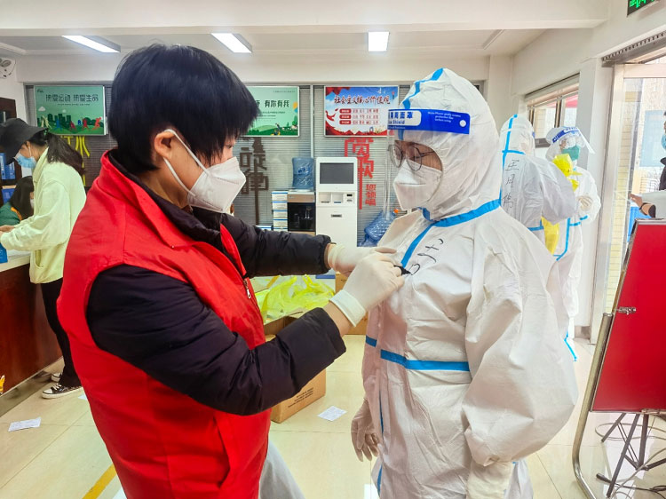 疫情初期每天都是入戶(hù)檢測(cè),32層樓,共計(jì)200多人的檢測(cè)耗時(shí)接近一天。每天除了爬樓和不能坐的辛苦外,為了節(jié)省隔離服,大家都是不吃不喝不上廁所,天氣熱的時(shí)候全身濕透,天氣冷的時(shí)候凍的手都沒(méi)有知覺(jué),雖然很辛苦,但大家依然在堅(jiān)守。